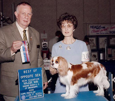 I always loved dogs and always had one as a child as well as when I married. But it wasn’t until we were empty nesters that the passion for showing and breeding dogs began. I had toy poodles, mutts, and cocker spaniels and thought about showing cockers. But after I was shown all the work involved in keeping up a show cocker coat, I decided otherwise. Ironically I saw a ‘small cocker’ on an internet page, I began the search for these new cockers called Cavalier King Charles Spaniels. I met so many nice people who helped me along the way in my journey to acquire a show quality female, Brookhaven Noel, and thus my journey began.